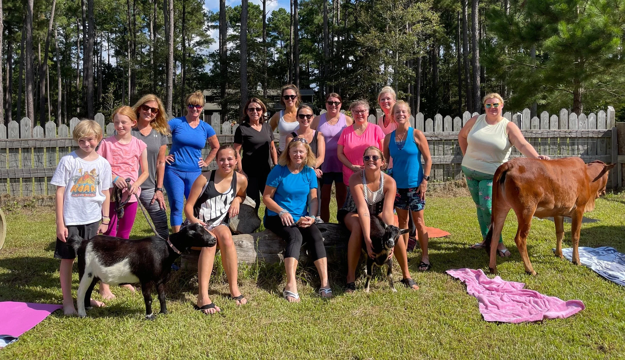 Therapeutic HOOF Farm Yoga with a miniature cow and mini goatsHOMESTEAD FARM TOURS